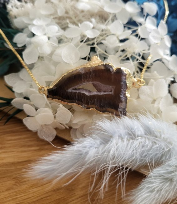 - Kamień: Agat - naturalny kamień o unikalnej strukturze i barwie. Każdy egzemplarz różni się rysunkiem i odcieniem, dzięki czemu każdy naszyjnik jest absolutnie niepowtarzalny. Agat od wieków uznawany jest za kamień harmonii, równowagi i ochrony.