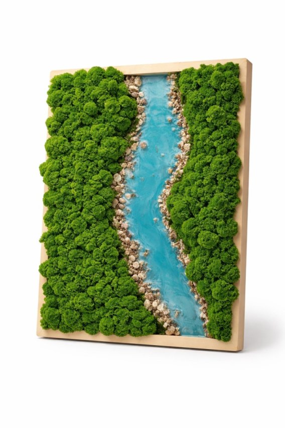Obraz z żywicy epoksydowej i mchu chrobotka „Rzeka" - natura zamknięta w kompozycji
